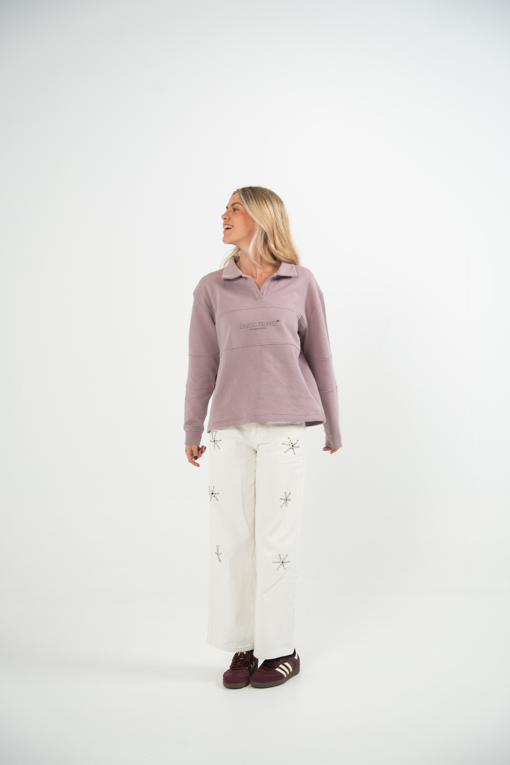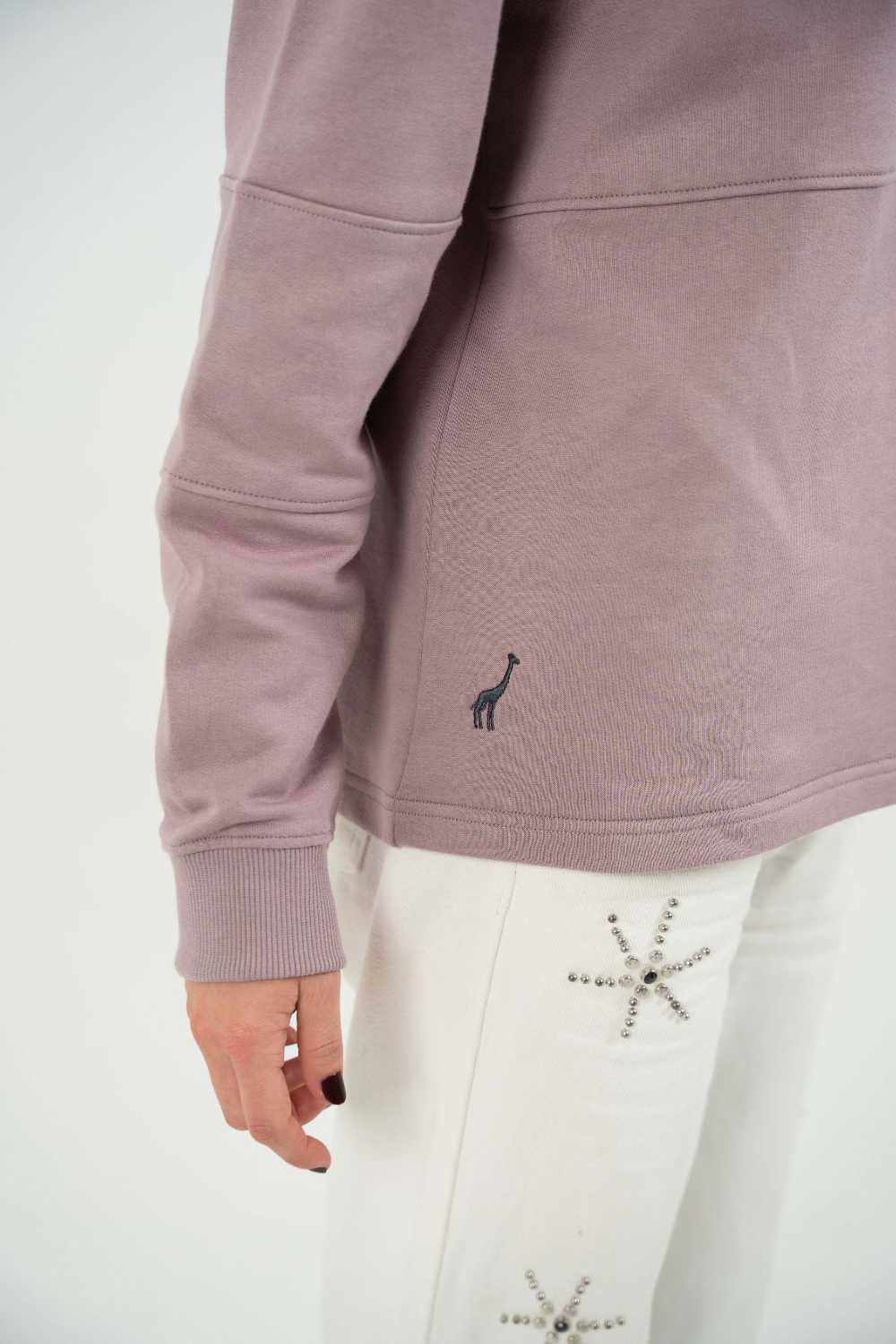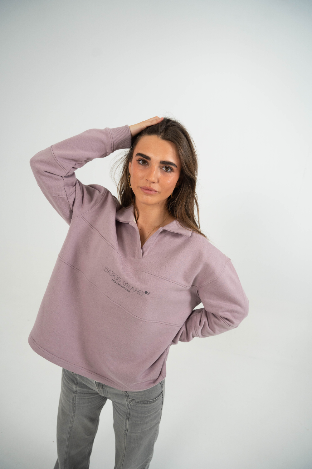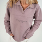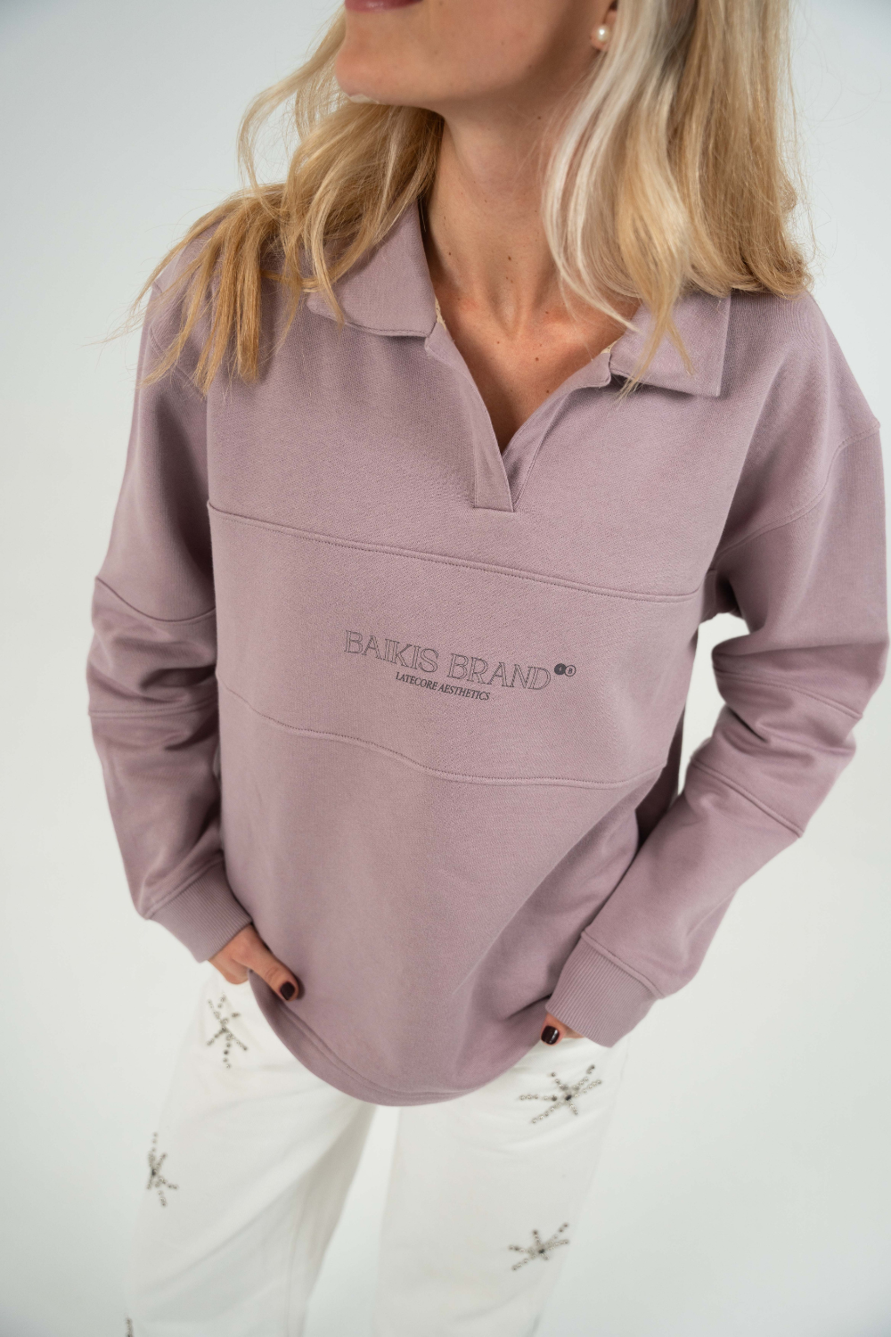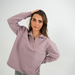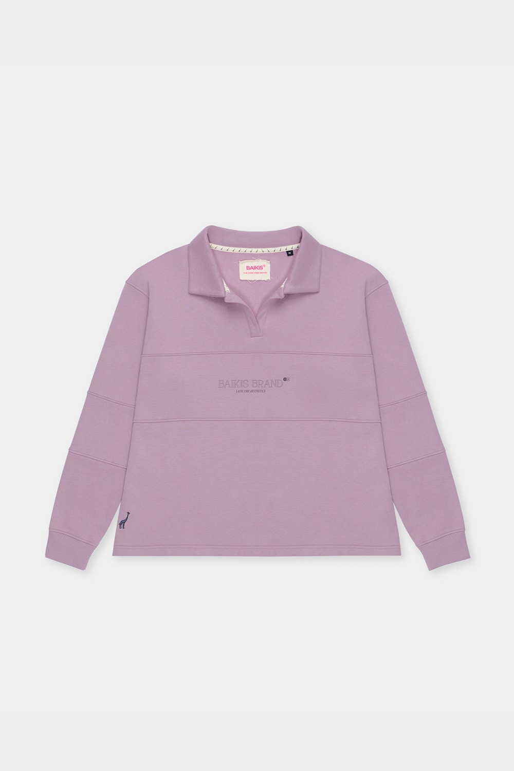 Sudadera tipo polo en tono malva claro. Presenta la serigrafia BAIKIS BRAND en la parte frontal y un bordado de jirafa en el lado izquierdo. Fabricada por Baikis en felpa 100% algodón, cuidando cada detalle para ofrecer comodidad, durabilidad y acabados de primera. Una prenda versátil y de alta calidad que se convertirá en tu favorita desde el primer día.
